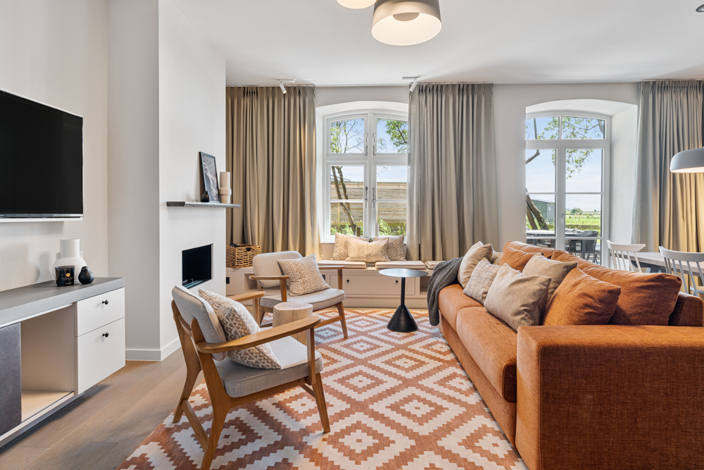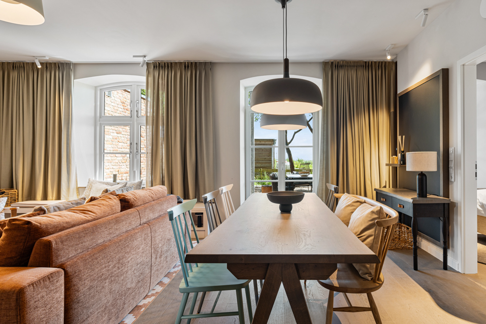 Willkommen in einem einzigartigen Objekt in St. Peter-Ording, das sich in der ehemaligen alten Schule befindet. Diese historische Immobilie wurde im letzten Jahr aufwendig kernsaniert und besticht nun durch eine harmonische Verbindung aus modernem Komfort und historischem Charme. Die Wohnung verfügt über eine effiziente Erdwärmeheizung, die eine wohlige Fußbodenheizung in allen Räumen ermöglicht. Der Mittelpunkt und das Herzstück der Wohnung ist der großzügige Wohn-Ess-Bereich. Große Fensterelemente und bodentiefe Fenster sorgen für ein lichtdurchflutetes Ambiente und bieten Zutritt zur wunderschönen Terrasse. Von hier aus genießen Sie einen atemberaubenden Blick über die Wiesen und Felder Westerhevers bis hin zum Deich. Der kleine eigene Gartenanteil neben der Terrasse garantiert absolute Privatsphäre auf Eiderstedt. Der stilvolle Wohnbereich mit integriertem Essbereich und einem gemütlichen Gaskamin ist sowohl an kalten Tagen als auch bei schönem Wetter der perfekte Rückzugsort nach langen Spaziergängen oder Fahrradtouren am Deich. Die traumhafte Ausstattung, die hochwertigen Tischlereinbauten und die perfekt aufeinander abgestimmten Materialien und Farben, entworfen von dem renommierten Innendesigner Olaf Kitzig, schaffen eine luxuriöse Wohnatmosphäre. Alte Elemente und Fenster der alten Schule wurden liebevoll aufgearbeitet und integriert, was dem Raum einen besonderen historischen Charme verleiht. Der wunderschöne Eichenholzboden, kombiniert mit hellen Materialien und einem modernen, dennoch klassischen Stil, erzeugt ein einzigartiges Ambiente. Das stilvolle Schlafzimmer, ausgestattet mit hochwertigen Einbaumöbeln, sowie der einladende Wohnbereich, der eine alte Steinmauer zur Geltung bringt, verleihen der Wohnung einen ganz besonderen Charme. Die hochwertige Küche ist mit allen Annehmlichkeiten und erstklassigen Elektrogeräten ausgestattet. Diese komplett ausgestattete Wohnung ist sofort zur Ferienvermietung verfügbar und bietet Feriengästen einen perfekten Rückzugsort abseits des Trubels von St. Peter-Ording. Auf dem großzügigen Außengelände, das insgesamt 13.000 m² umfasst und parkartig angelegt wird, entsteht eine wahre Ruheoase. Diese idyllische Anlage bietet Sitzmöglichkeiten und Abstellflächen, die zum Verweilen und Entspannen einladen. Ein besonderes Highlight ist das Naturschwimmbad, das perfekt in die natürliche Umgebung integriert ist. Hier können Sie sich inmitten der Natur erfrischen und erholen. Zusätzlich stehen den Bewohnern Fasssaunen und ein Gym zur Verfügung, die einen Hauch von Luxus und Entspannung bieten. Ein liebevoll gestalteter Kinderspielplatz sorgt dafür, dass auch die jüngsten Bewohner und Gäste sich rundum wohlfühlen und Spaß haben. Die wunderschöne Anlage befindet sich direkt an der historischen Kirche von Westerhever und ergänzt das perfekte Wohnobjekt optimal. Diese harmonische Kombination aus historischer Architektur und modernem Komfort schafft einen einzigartigen Ort der Ruhe und Erholung. Erleben Sie luxuriöses Wohnen in einer historischen Umgebung, die durch eine exquisite Ausstattung und einen unvergleichlichen Charme besticht. Diese Wohnung in der ehemaligen alten Schule von St. Peter-Ording ist der ideale Ort für anspruchsvolle Feriengäste, die Ruhe und Erholung suchen.