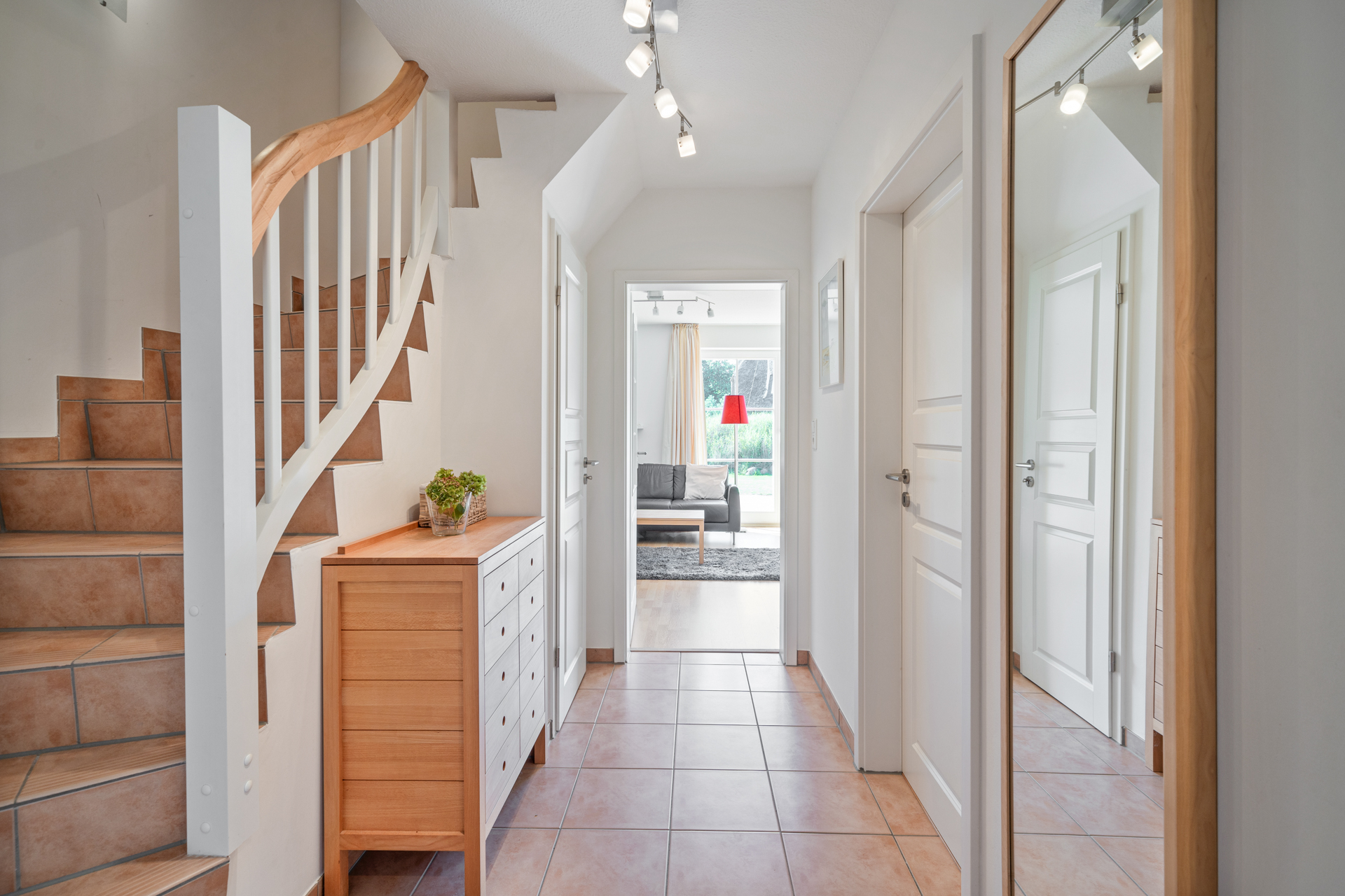 Zum Verkauf steht eine im Jahr 2008 erbaute, charmante Doppelhaushälfte mit einer Gesamtfläche von 100 m², gelegen auf einem idyllischen, von einem Friesenwall umgebenen Grundstück von 615 m². Diese Immobilie bietet mit ihren vier Zimmern, darunter zwei Schlafzimmer und ein Badezimmer, die ideale Wohnatmosphäre für Ihren Urlaub in der begehrten Ferienregion St. Peter-Ording. Beim Betreten des Erdgeschosses erwartet Sie ein großzügiges Wohnzimmer, das durch seine offene Gestaltung und die integrierte, moderne Küche beeindruckt. Die Küche ist vollständig mit hochwertigen Mielelektrogeräten ausgestattet und lässt keine Wünsche offen. Ein Gäste-WC sowie ein praktischer Abstellraum ergänzen das Raumangebot im Erdgeschoss. Vom Wohnbereich aus gelangen Sie auf die sonnige Terrasse und in den herrlichen Garten, der in Südwestausrichtung liegt und reichlich Platz für entspannte Stunden im Freien bietet. Der Garten ist ein echtes Highlight, umgeben von einem typischen Friesenwall, der nicht nur Privatsphäre schafft, sondern auch den traditionellen Charme der Region unterstreicht. Eine Treppe führt Sie ins Obergeschoss, wo zwei gemütliche Schlafzimmer sowie ein vollwertiges Badezimmer auf Sie warten. Diese Etage bietet den perfekten Platz für die ganze Familie, um sich nach einem Tag am Strand zu erholen. Darüber hinaus bietet der Spitzboden zusätzliche Nutzungs- und Gestaltungsmöglichkeiten. Dieser Raum ist durch eine Glastür abgetrennt und kann als zusätzlicher, abgeschlossener Raum genutzt werden – ideal als Rückzugsort. Die Doppelhaushälfte liegt in einer der begehrtesten Wohngegenden von St. Peter-Ording, im malerischen Strandhaferring. Der Strandhaferring ist bekannt für seine einzigartige Anordnung von wunderschönen Reetdachhäusern, die sich harmonisch in die umliegende Landschaft einfügen und den typischen Charakter des Ortes widerspiegeln. Die Gegend besticht durch ihre ruhige und doch zentrale Lage, umgeben von gepflegten Friesenwällen und einer farbenprächtigen Vegetation, die im Laufe des Jahres ein beeindruckendes Naturschauspiel bietet. Der großzügige Garten mit seiner einladenden Terrasse ist perfekt für entspannte Sommerabende und bietet ausreichend Platz für Familie und Freunde. Besonders hervorzuheben sind die beiden Doppelgaragen und die zusätzlichen Stellplätze vor der Tür, die nicht nur ausreichend Platz für Ihre Fahrzeuge bieten, sondern auch zusätzlichen Stauraum und der praktische HWR der Platz für eine Waschmaschine und einen Trockner bietet. Diese wunderschöne Doppelhaushälfte wird möbliert übergeben und ist sofort bezugsfertig. Sie bietet eine seltene Gelegenheit, in eine der schönsten Gegenden von St. Peter-Ording zu ziehen und den unverwechselbaren Charme der Region zu genießen. Lassen Sie sich bei einer persönlichen Besichtigung von dieser besonderen Immobilie überzeugen und entdecken Sie Ihr neues Zuhause oder Feriendomizil in St. Peter-Ording.