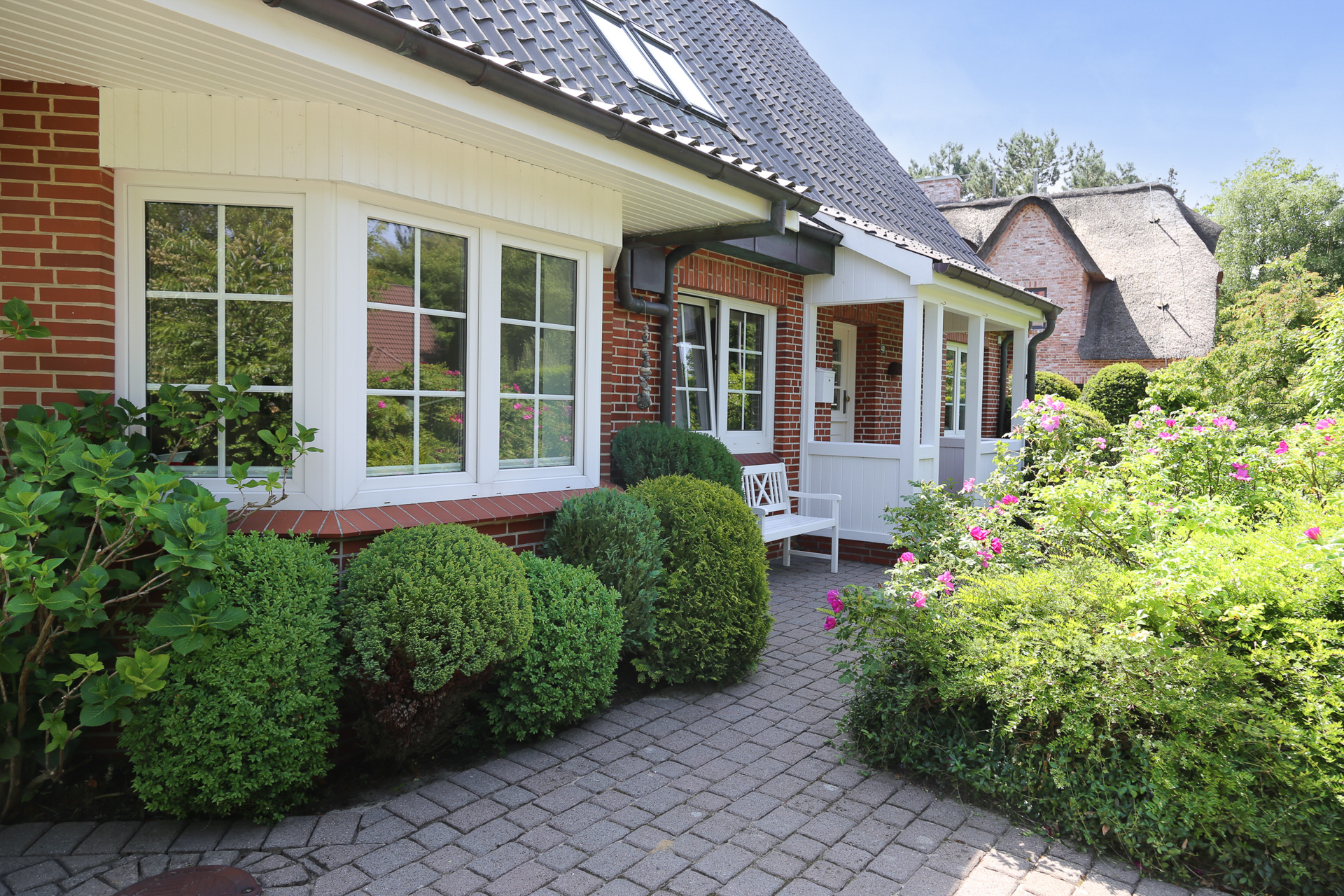 Im begehrten Ortsteil Dorf von St. Peter-Ording, eingebettet in idyllischer Ruhe und direkter Nachbarschaft zum Wald, erwartet Sie ein ganz besonderes Zuhause auf einem traumhaften, über 1.100 m² großen Grundstück. Der liebevoll gepflegte Garten mit altem Baumbestand, prachtvollen Rhododendren-Büschen und üppigem Grün bietet absolute Privatsphäre -ein Naturidyll, wie man es nur selten findet. Das ursprünglich im Jahr 1959 erbaute Haus wurde von den heutigen Eigentümern 1997/1998 umfassend kernsaniert. Dabei wurden sämtliche Versorgungsleitungen, die Elektrik, das Dach sowie zahlreiche Fenster erneuert - mit viel Feingefühl für Substanz und Stil. Im Jahr 2004 wurde das Haus durch einen St. Peteraner Architekten um einen ca. 50 m² großen Anbau erweitert, der als autarke Einheit konzipiert wurde, baurechtlich jedoch zum Haupthaus gehört.
