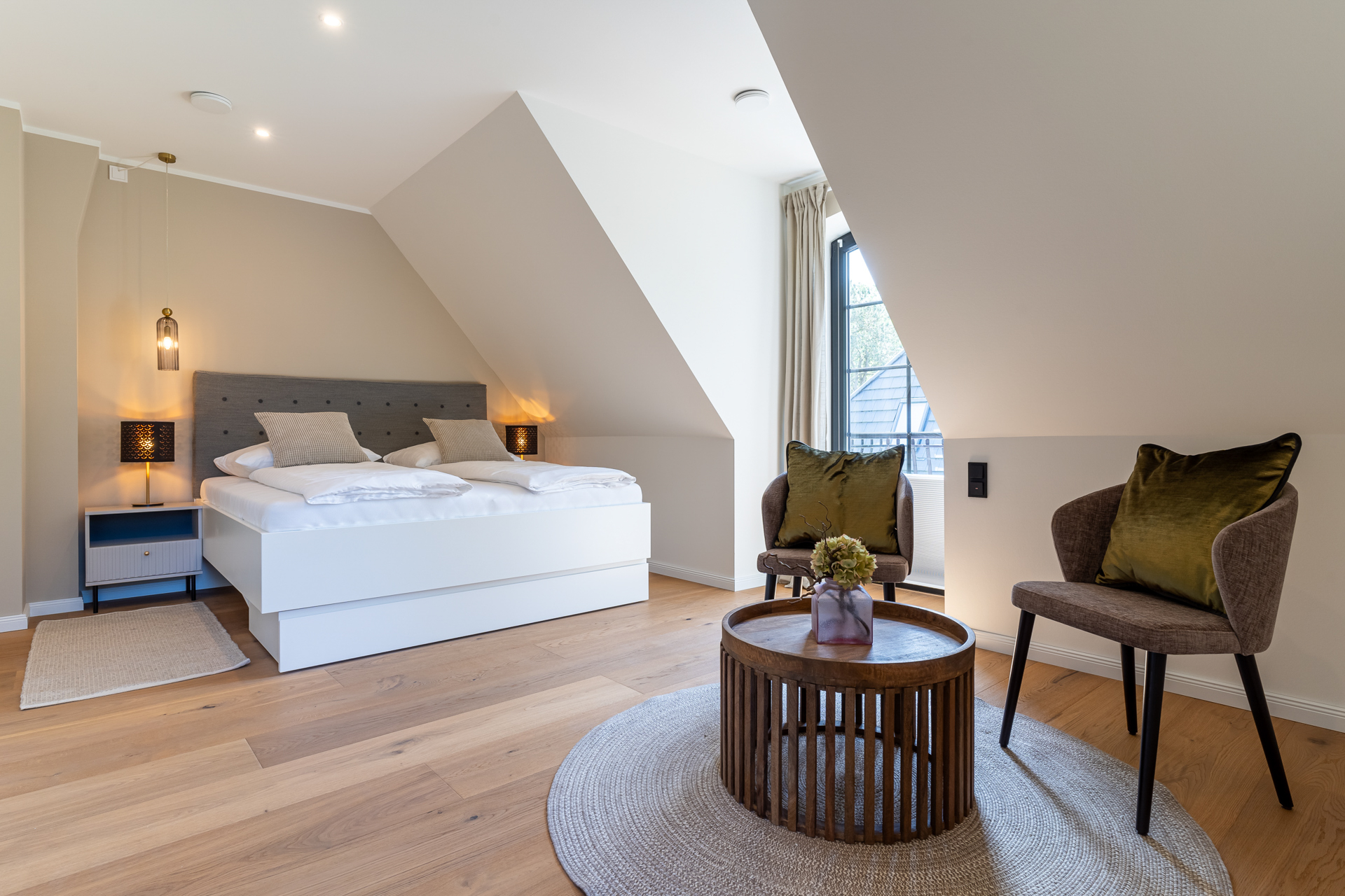 Der Außenbereich unterstreicht den hochwertigen Gesamteindruck. Die klassische Klinkerfassade, stilvolle Balkone sowie die großzügige Terrasse fügen sich harmonisch in den gepflegten Garten ein und bieten vielfältige Möglichkeiten zum Entspannen im Freien. Abgerundet wird das Gesamtbild durch eine moderne und energieeffiziente Wärmepumpenheizung, die zeitgemäßen Wohnkomfort mit nachhaltiger Technik verbindet. Dank der großzügigen Raumaufteilung, der hochwertigen Ausstattung und der begehrten Lage eignet sich diese Immobilie ideal sowohl als exklusiver Erstwohnsitz als auch als hochwertiger Zweitwohnsitz an der Nordsee.
