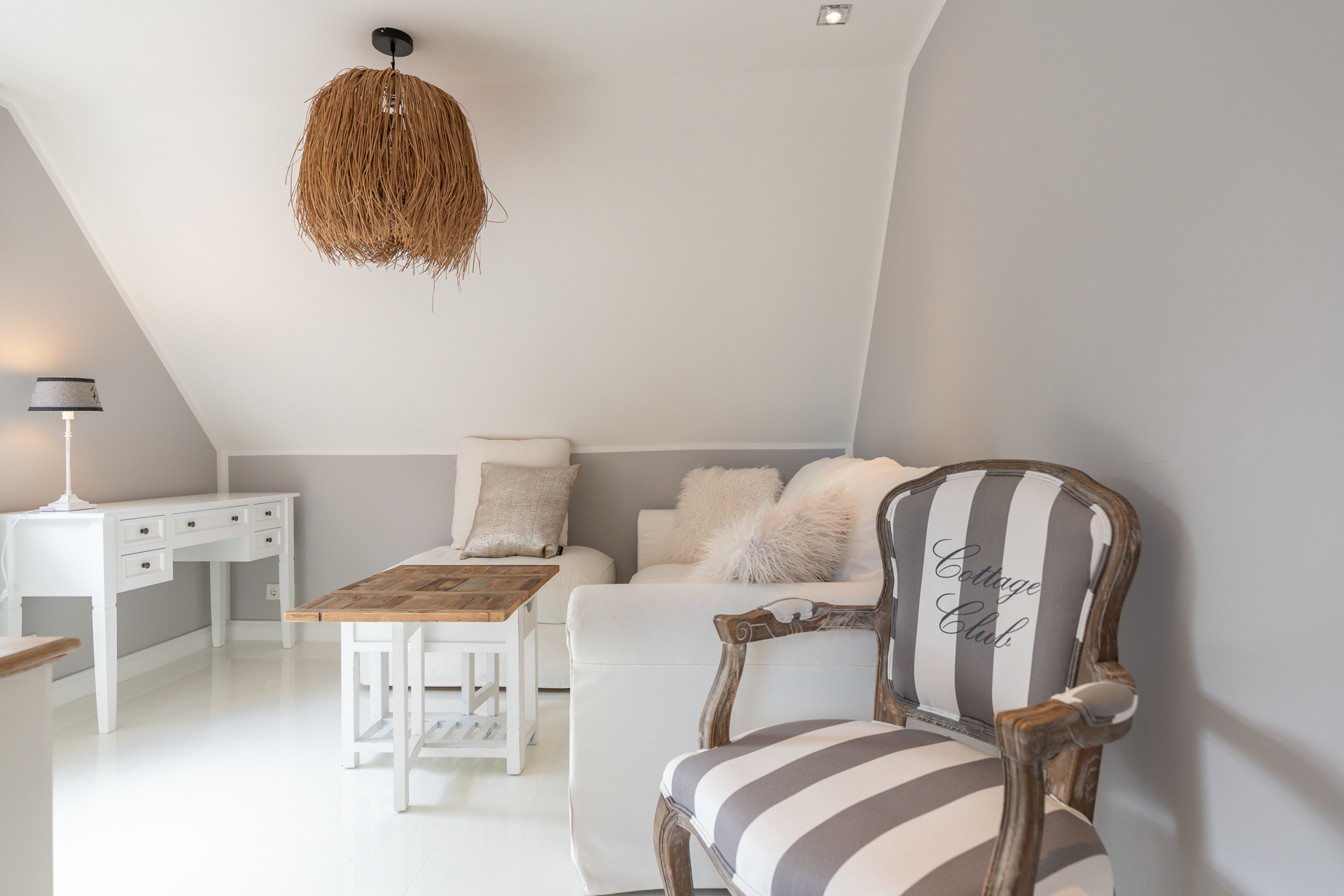 Das Objekt wird vollständig möbliert verkauft und ist sofort bezugs- beziehungsweise vermietfertig. Die überwiegend von Riviera Maison stammende Einrichtung unterstreicht den eleganten, wohnlichen Charakter des Hauses. Zum Inventar zählen außerdem drei hochwertige CocoMat Betten, drei voll ausgestattete Einbauküchen, drei Strandkörbe sowie das exklusive Saunahaus im Garten.