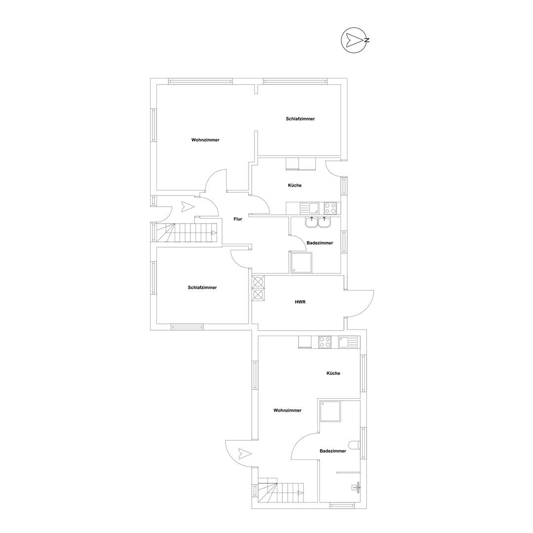 Die Wohnung im Obergeschoss verfügt zusätzlich über einen großzügigen Dachboden, der weitere Nutzungs- und Gestaltungsmöglichkeiten bietet.
