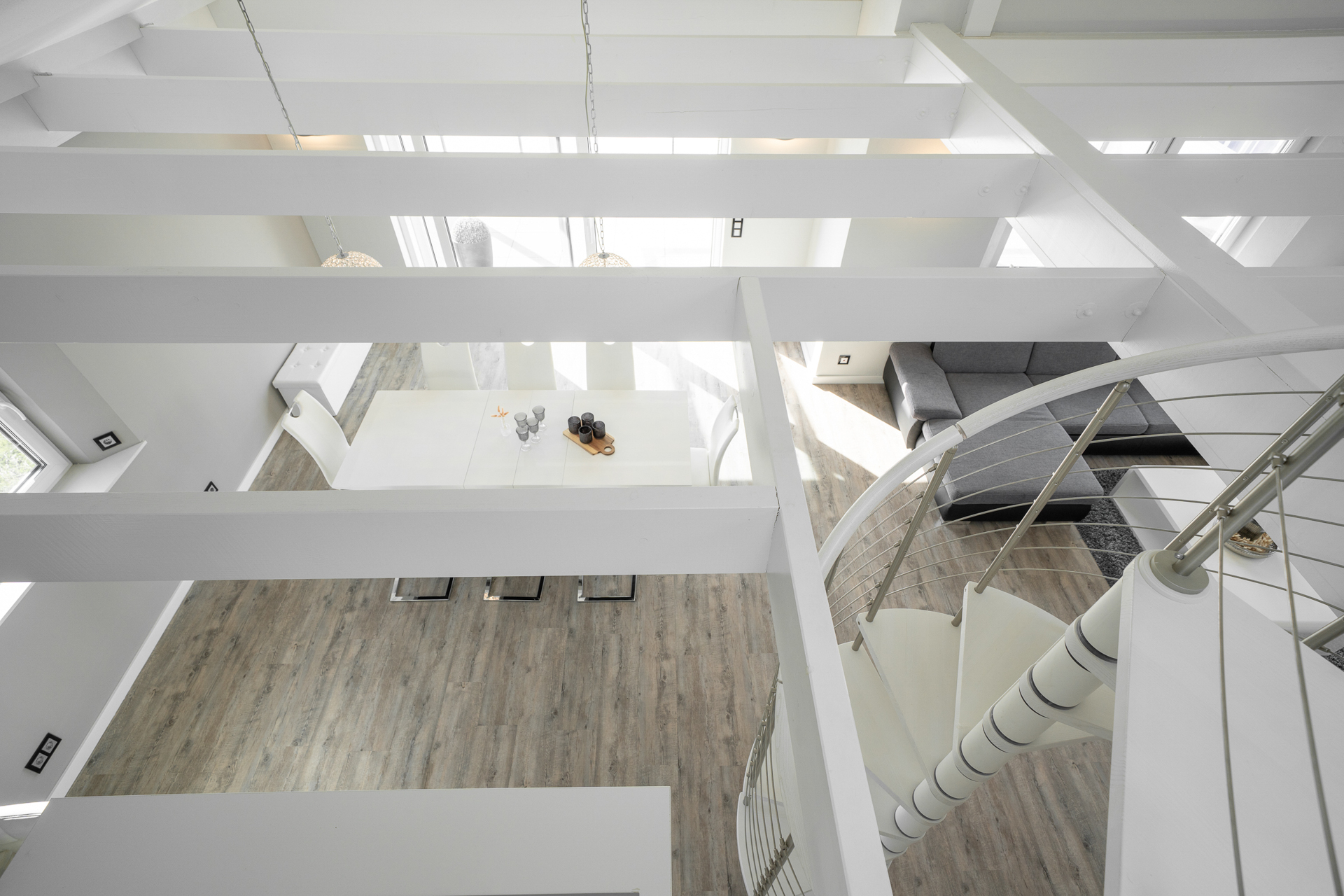 Dieses exklusive Penthouse befindet sich in St. Peter-Ording, im beliebten Ortsteil Dorf, im vorderen Bereich des Dachgeschosses eines im Jahr 2013 erbauten Hauses mit insgesamt nur neun Einheiten. Bereits beim Betreten beeindruckt die Wohnung durch ihre Großzügigkeit und ihren besonderen Charakter. Auf rund 154 Quadratmetern Wohnfläche erwarten die neuen Eigentümer vier Zimmer, darunter drei Schlafzimmer, sowie ein weitläufiger Wohn- und Essbereich mit offener Galerie und sichtbaren weißen Holzbalken, die der Wohnung eine helle und elegante Atmosphäre verleihen. Die Galerie ist über eine Wendeltreppe erreichbar und eröffnet vielfältige Nutzungsmöglichkeiten.