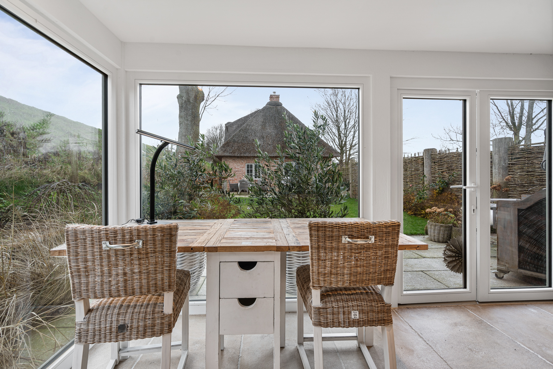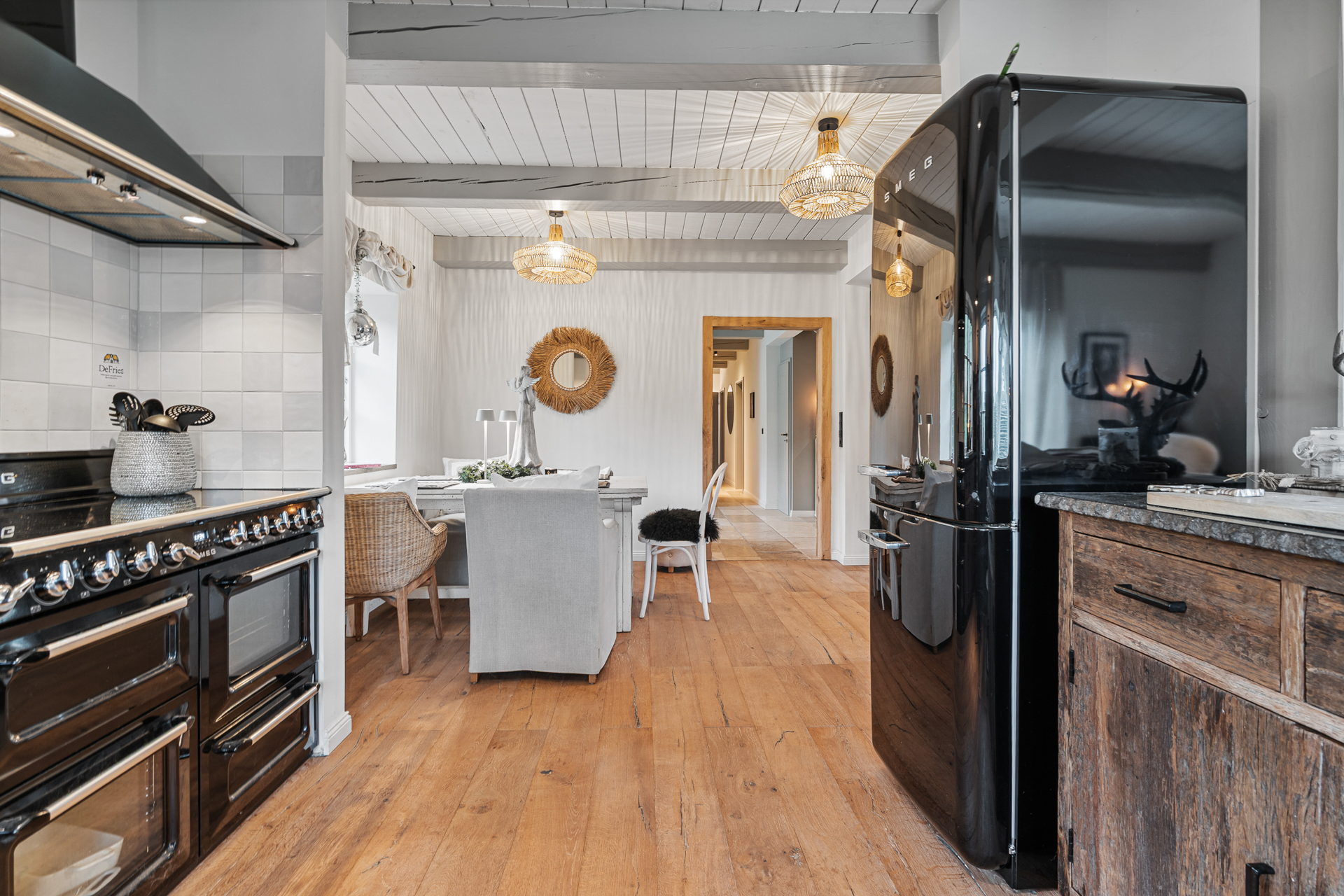 Das gesamte Objekt besticht durch eine außergewöhnlich hochwertige Materialauswahl. Naturstein und Blausteinfußböden, edle Eichenholzböden, massive Türzargen aus Eichenholz sowie liebevoll ausgewählte Delfter Fliesen in den Küchen und Badezimmerbereichen schaffen ein warmes, elegantes Ambiente mit nordischem Charakter. Eine klassische Klön-Schnack-Tür unterstreicht zusätzlich den traditionellen Stil des Hauses.