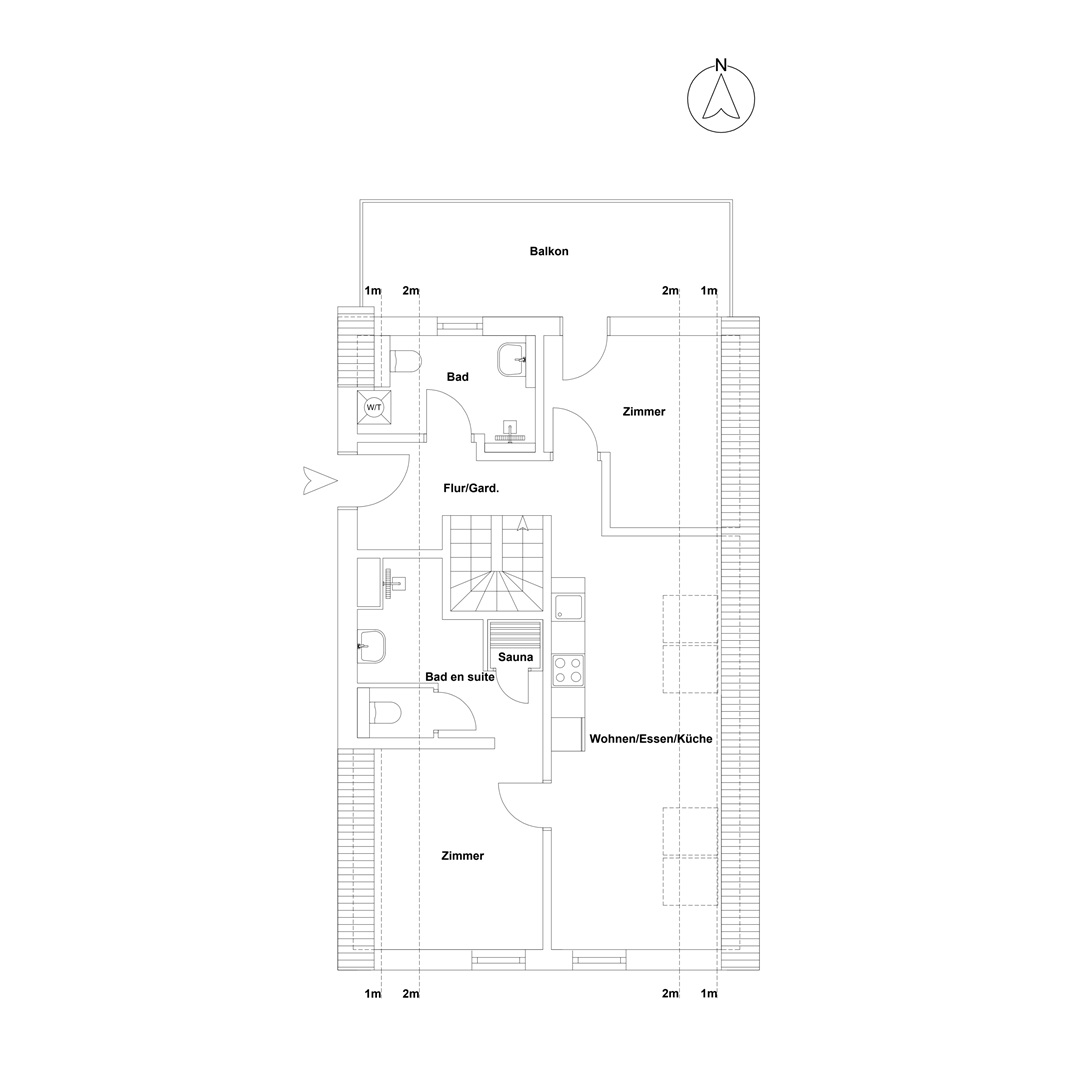 Ein weiteres exklusives Ausstattungsmerkmal ist die integrierte Sauna, die das hochwertige Wohnkonzept perfekt ergänzt und den privaten Rückzugsort um einen besonderen Wellnessaspekt erweitert.