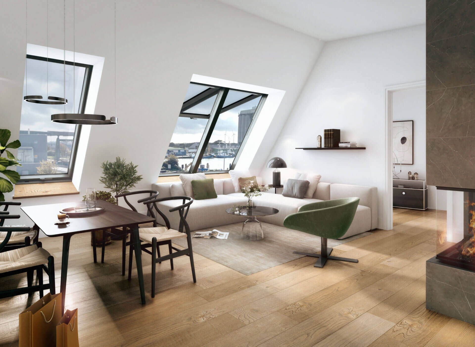 Die stilvolle Raumaufteilung, hochwertige Materialien und die besondere Architektur verleihen dieser Einheit eine exklusive Wohnatmosphäre, die sich deutlich von klassischen Grundrissen abhebt.