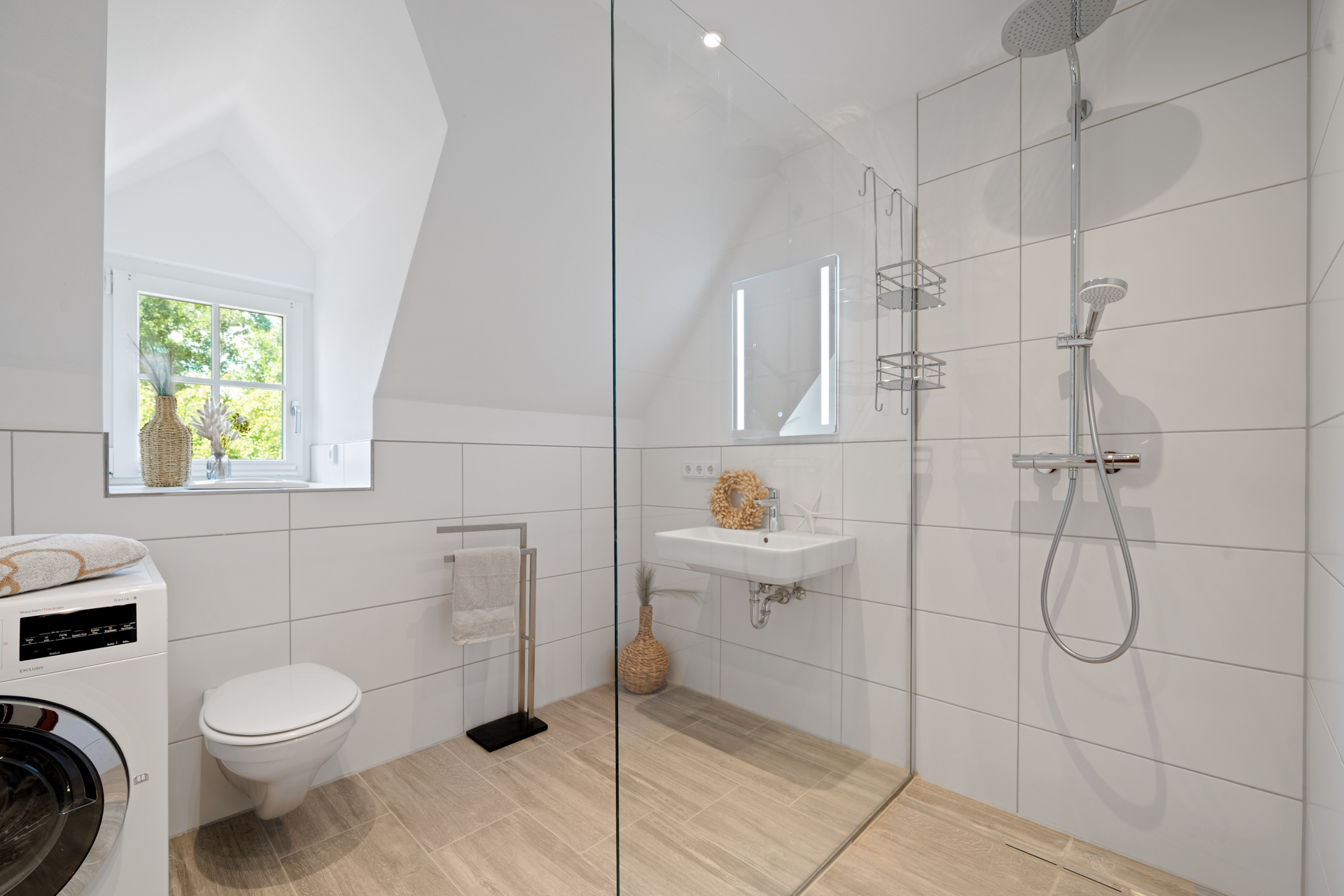 Das Haus selbst wurde 1998 erbaut und befindet sich in einem sehr gepflegten Zustand. Die Wohnfläche beträgt ca. 79 m² und wird durch einen großzügig ausgebauten Spitzboden mit rund 13 m² ergänzt, der durch seine großen Fenster und das helle Raumgefühl viel zusätzliche Wohnqualität bietet. Im Erdgeschoss erwartet Sie eine gemütliche Küche im Landhausstil, die neben einer voll ausgestatteten Einbauküche auch Raum für einen großzügigen Esstisch mit Blick ins Grüne bietet. Direkt angrenzend befindet sich der Heizungsraum mit Stauraum. Ein modernes Gästebad sorgt auf dieser Ebene zusätzlich für Komfort. Herzstück des Erdgeschosses ist das großzügige Wohnzimmer, das durch vier bodentiefe Fensterelemente mit direktem Zugang zur Terrasse sowie ein weiteres großes Fenster lichtdurchflutet wirkt. So entsteht ein fließender Übergang von Wohnraum zu Terrasse und Garten, ideal für gesellige Abende oder entspannte Stunden im Freien.