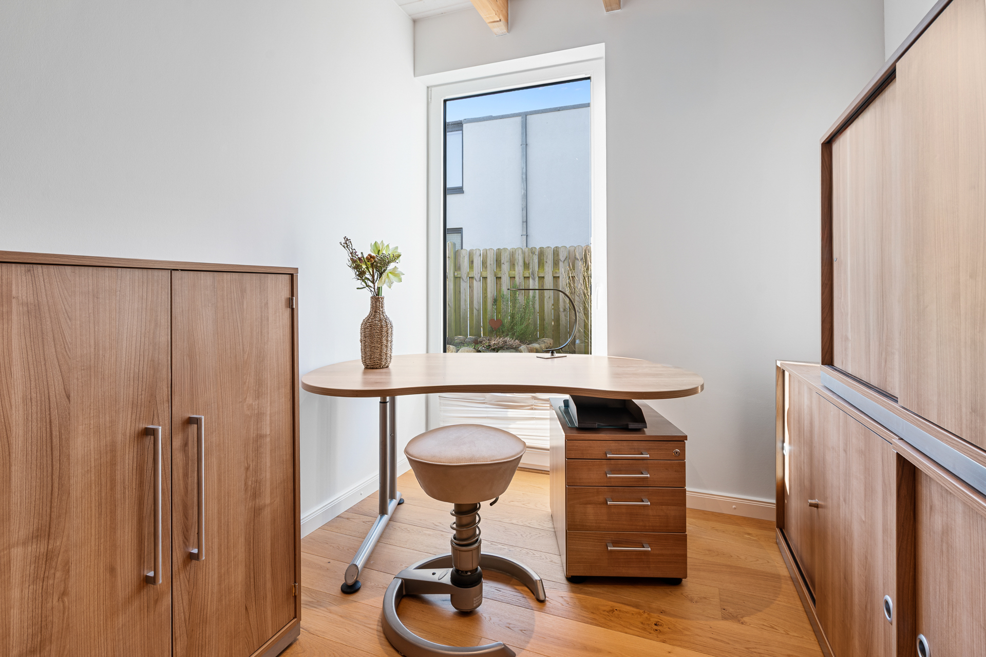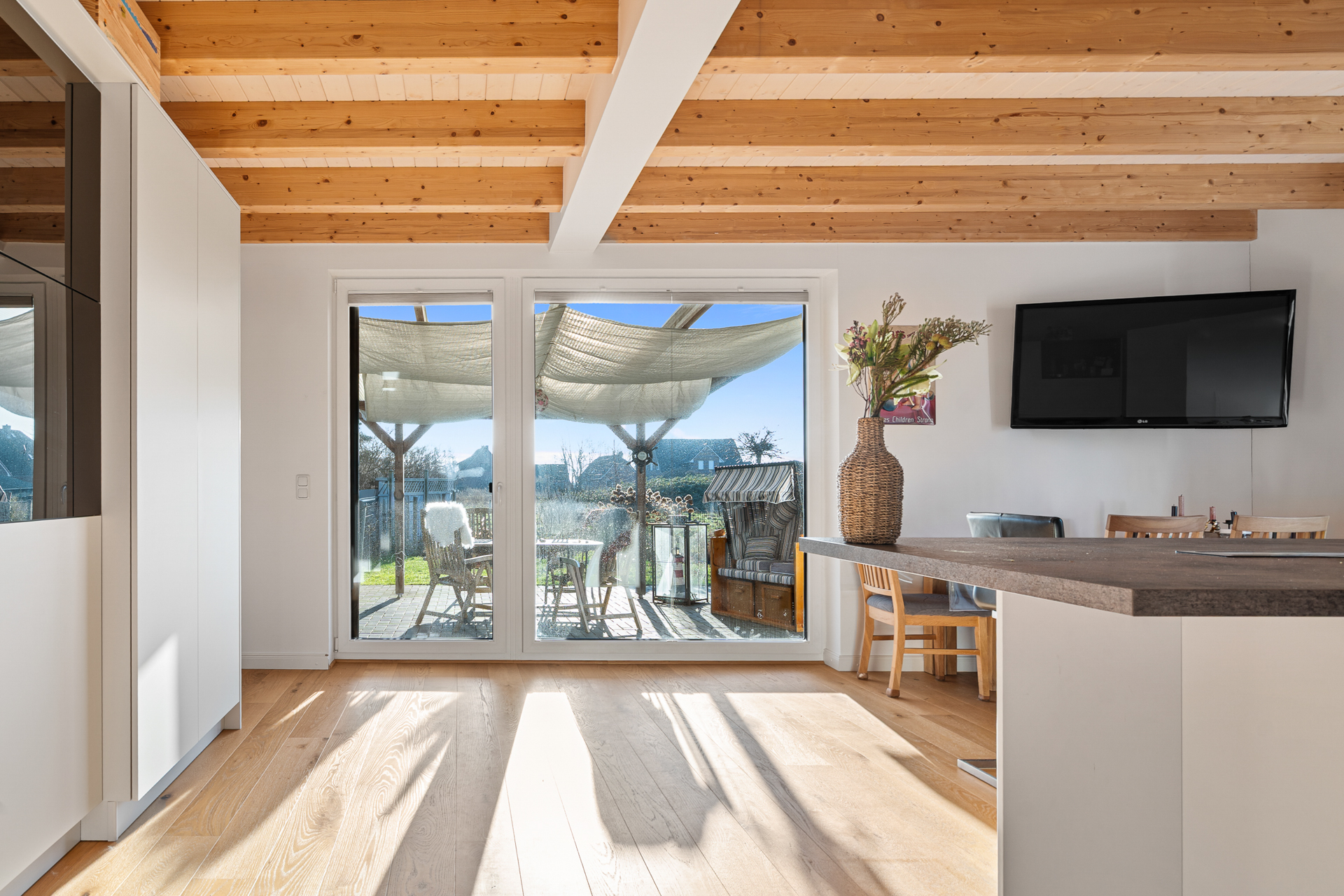 Der Außenbereich ist pflegeleicht angelegt und bietet eine geschützte Terrasse sowie einen kompakten Gartenbereich, ideal für ruhige Momente an der frischen Nordseeluft. Dank Realteilung steht der gesamte Außenbereich zur alleinigen Nutzung bereit. Auch technisch ist das Haus überzeugend ausgestattet: Eine effiziente Luftwärmepumpe sorgt für angenehmen Heizkomfort und trägt zu niedrigen Energiekosten bei. Die großzügigen Fensterflächen und die hochwertige Bauausführung verleihen dem Haus eine helle, zeitgemäße Anmutung. Der äußerst gepflegte Zustand, der auf die nur seltene Nutzung zurückzuführen ist, verstärkt den Eindruck einer nahezu neuwertigen Immobilie.
