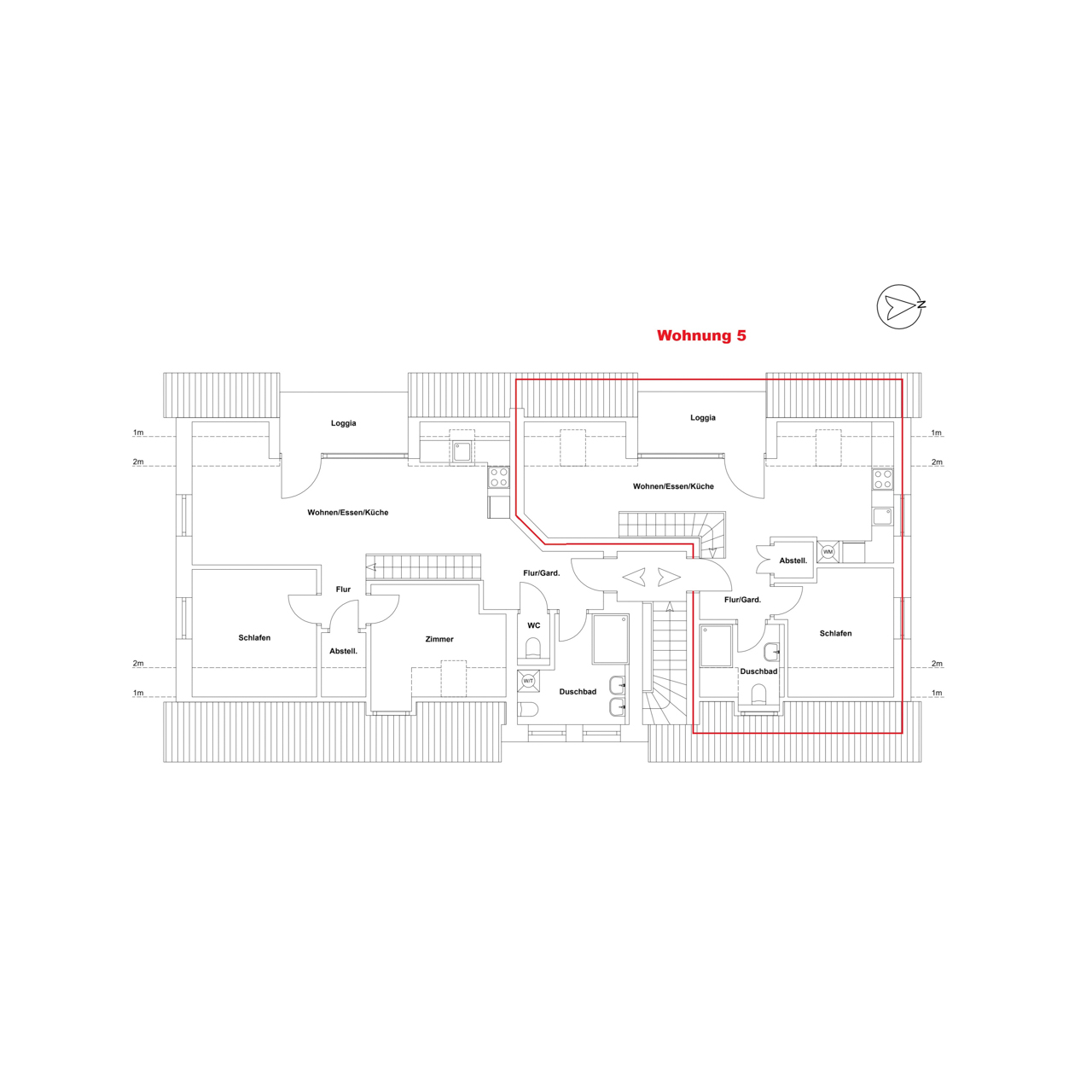 Der großzügige Wohnbereich ist mit einer offenen Küche ausgestattet, die über alle notwendigen Anschlüsse für eine hochwertige Einbauküche verfügt und sich perfekt in das moderne Wohnkonzept einfügt.