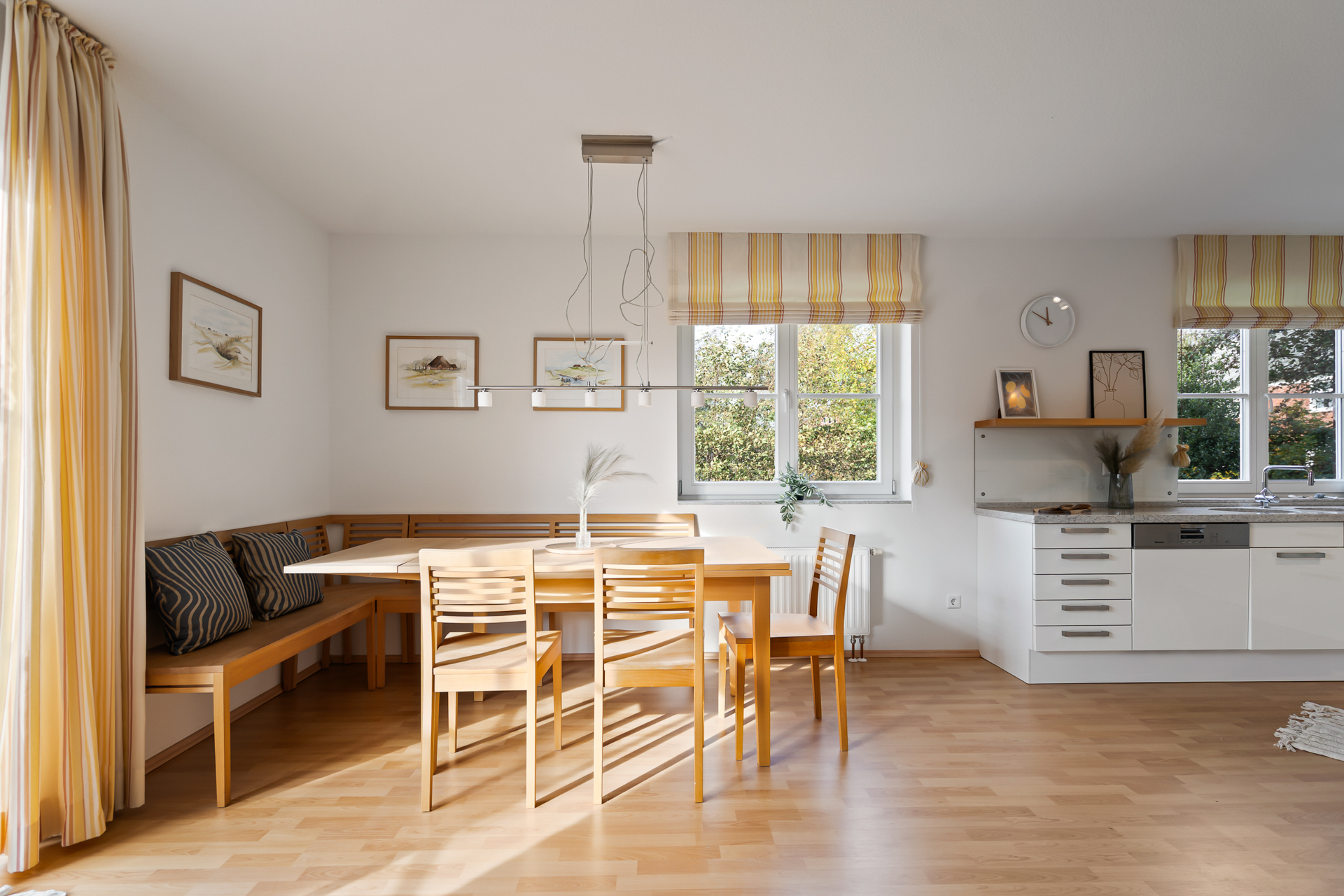 Zum Verkauf steht eine im Jahr 2008 erbaute, charmante Doppelhaushälfte mit einer Gesamtfläche von 100 m², gelegen auf einem idyllischen, von einem Friesenwall umgebenen Grundstück von 615 m². Diese Immobilie bietet mit ihren vier Zimmern, darunter zwei Schlafzimmer und ein Badezimmer, die ideale Wohnatmosphäre für Ihren Urlaub in der begehrten Ferienregion St. Peter-Ording. Beim Betreten des Erdgeschosses erwartet Sie ein großzügiges Wohnzimmer, das durch seine offene Gestaltung und die integrierte, moderne Küche beeindruckt. Die Küche ist vollständig mit hochwertigen Mielelektrogeräten ausgestattet und lässt keine Wünsche offen. Ein Gäste-WC sowie ein praktischer Abstellraum ergänzen das Raumangebot im Erdgeschoss. Vom Wohnbereich aus gelangen Sie auf die sonnige Terrasse und in den herrlichen Garten, der in Südwestausrichtung liegt und reichlich Platz für entspannte Stunden im Freien bietet. Der Garten ist ein echtes Highlight, umgeben von einem typischen Friesenwall, der nicht nur Privatsphäre schafft, sondern auch den traditionellen Charme der Region unterstreicht. Eine Treppe führt Sie ins Obergeschoss, wo zwei gemütliche Schlafzimmer sowie ein vollwertiges Badezimmer auf Sie warten. Diese Etage bietet den perfekten Platz für die ganze Familie, um sich nach einem Tag am Strand zu erholen. Darüber hinaus bietet der Spitzboden zusätzliche Nutzungs- und Gestaltungsmöglichkeiten. Dieser Raum ist durch eine Glastür abgetrennt und kann als zusätzlicher, abgeschlossener Raum genutzt werden – ideal als Rückzugsort. Die Doppelhaushälfte liegt in einer der begehrtesten Wohngegenden von St. Peter-Ording, im malerischen Strandhaferring. Der Strandhaferring ist bekannt für seine einzigartige Anordnung von wunderschönen Reetdachhäusern, die sich harmonisch in die umliegende Landschaft einfügen und den typischen Charakter des Ortes widerspiegeln. Die Gegend besticht durch ihre ruhige und doch zentrale Lage, umgeben von gepflegten Friesenwällen und einer farbenprächtigen Vegetation, die im Laufe des Jahres ein beeindruckendes Naturschauspiel bietet. Der großzügige Garten mit seiner einladenden Terrasse ist perfekt für entspannte Sommerabende und bietet ausreichend Platz für Familie und Freunde. Besonders hervorzuheben sind die beiden Doppelgaragen und die zusätzlichen Stellplätze vor der Tür, die nicht nur ausreichend Platz für Ihre Fahrzeuge bieten, sondern auch zusätzlichen Stauraum und der praktische HWR der Platz für eine Waschmaschine und einen Trockner bietet. Diese wunderschöne Doppelhaushälfte wird möbliert übergeben und ist sofort bezugsfertig. Sie bietet eine seltene Gelegenheit, in eine der schönsten Gegenden von St. Peter-Ording zu ziehen und den unverwechselbaren Charme der Region zu genießen. Lassen Sie sich bei einer persönlichen Besichtigung von dieser besonderen Immobilie überzeugen und entdecken Sie Ihr neues Zuhause oder Feriendomizil in St. Peter-Ording.