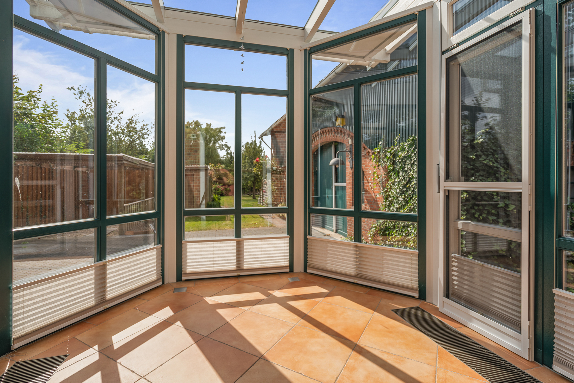 Im Inneren erwartet Sie ein großzügiger, funktionaler Wohnbereich mit insgesamt acht Zimmern, verteilt auf ca. 149 m² Wohnfläche und einer Gesamtfläche von rund 311 m². Über den einladenden Eingangsbereich gelangen Sie in ein helles Wohnzimmer mit Zugang zum beheizten Wintergarten. Diese Etage wird ergänzt durch ein weiteres Wohn- und Esszimmer, eine Küche, ein Schlafzimmer mit angrenzender Ankleide sowie ein Badezimmer. Über eine elegante, geschwungene Holztreppe gelangen Sie ins Obergeschoss, wo Sie ein großzügiges Elternschlafzimmer, zwei weitere Schlafzimmer, ein Badezimmer sowie ein weitläufiger Flurbereich erwarten, der sich ideal auch als Galerie oder Arbeitsbereich nutzen lässt. Das angeschlossene Nebengebäude ist direkt mit dem Haus verbunden und bietet mit Hauswirtschaftsbereich, Werkstatt, Garage sowie einer Sauna mit Tauchbecken vielfältige Nutzungsmöglichkeiten - sei es für Handwerk, Erholung oder zusätzlichen Platz im Alltag. Zwei Solarpaneele auf dem Dach unterstützen die Warmwasserbereitung nachhaltig.