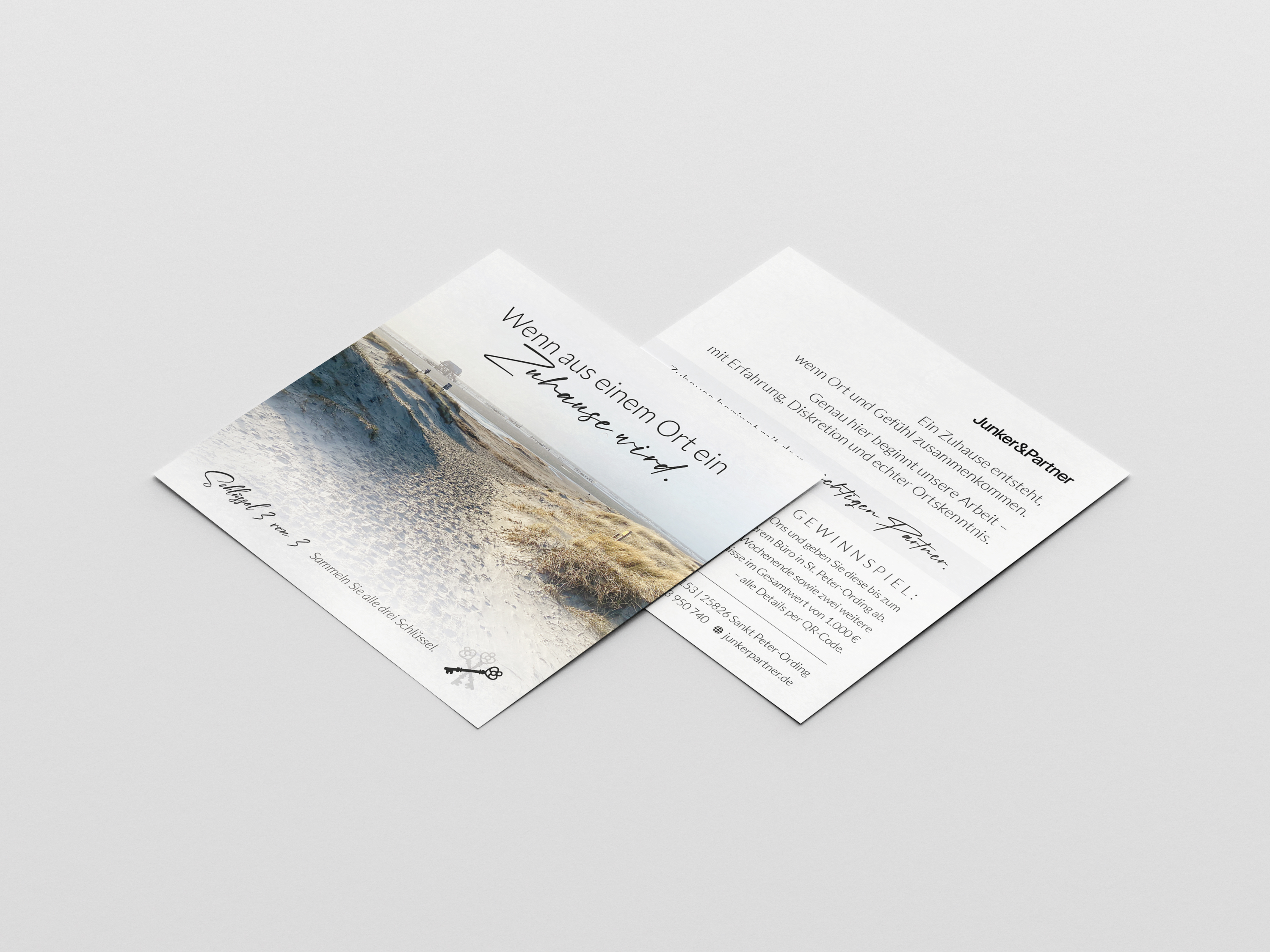 Veranstalter ist die Junker Immobilien GmbH, St. Peter-Ording. Teilnahme ab 18 Jahren. Mitarbeiter und deren Angehörige sind ausgeschlossen. Teilnahmeschluss ist der 30.11.2026. Der Gewinn wird unter allen gültigen Teilnahmen per Zufallsprinzip ermittelt und die Gewinner persönlich benachrichtigt. Keine Barauszahlung oder Übertragbarkeit des Gewinns. Personenbezogene Daten werden ausschließlich zur Durchführung des Gewinnspiels verwendet. Der Rechtsweg ist ausgeschlossen. Dieses Gewinnspiel steht in keiner Verbindung zum Magazins St. Peter-Ording und Eiderstedt oder Instagram/Facebook Meta.