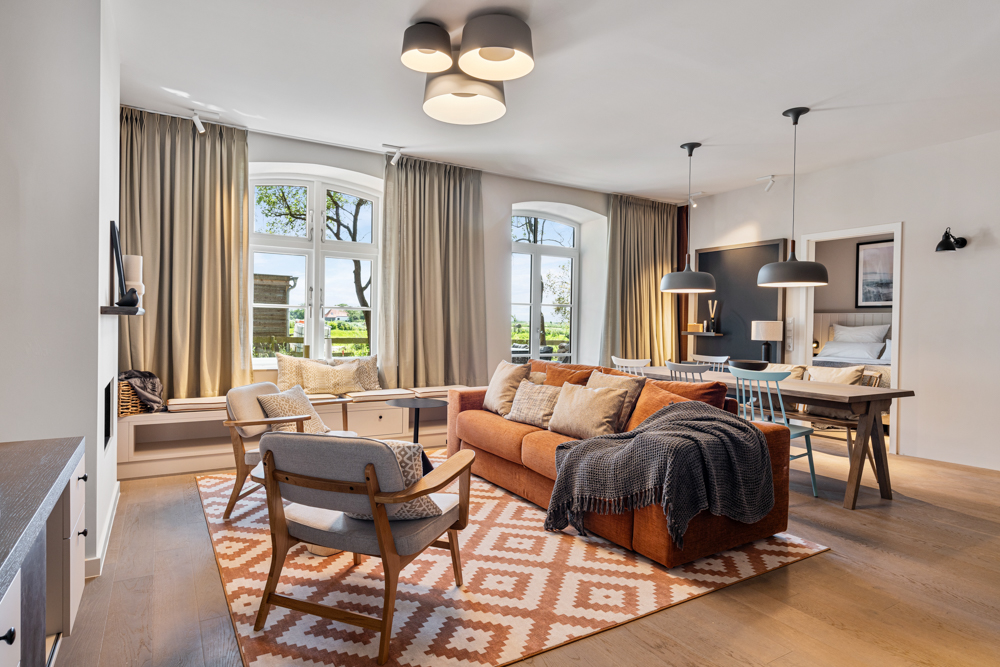 Willkommen in einem einzigartigen Objekt in St. Peter-Ording, das sich in der ehemaligen alten Schule befindet. Diese historische Immobilie wurde im letzten Jahr aufwendig kernsaniert und besticht nun durch eine harmonische Verbindung aus modernem Komfort und historischem Charme. Die Wohnung verfügt über eine effiziente Erdwärmeheizung, die eine wohlige Fußbodenheizung in allen Räumen ermöglicht. Der Mittelpunkt und das Herzstück der Wohnung ist der großzügige Wohn-Ess-Bereich. Große Fensterelemente und bodentiefe Fenster sorgen für ein lichtdurchflutetes Ambiente und bieten Zutritt zur wunderschönen Terrasse. Von hier aus genießen Sie einen atemberaubenden Blick über die Wiesen und Felder Westerhevers bis hin zum Deich. Der kleine eigene Gartenanteil neben der Terrasse garantiert absolute Privatsphäre auf Eiderstedt. Der stilvolle Wohnbereich mit integriertem Essbereich und einem gemütlichen Gaskamin ist sowohl an kalten Tagen als auch bei schönem Wetter der perfekte Rückzugsort nach langen Spaziergängen oder Fahrradtouren am Deich. Die traumhafte Ausstattung, die hochwertigen Tischlereinbauten und die perfekt aufeinander abgestimmten Materialien und Farben, entworfen von dem renommierten Innendesigner Olaf Kitzig, schaffen eine luxuriöse Wohnatmosphäre. Alte Elemente und Fenster der alten Schule wurden liebevoll aufgearbeitet und integriert, was dem Raum einen besonderen historischen Charme verleiht. Der wunderschöne Eichenholzboden, kombiniert mit hellen Materialien und einem modernen, dennoch klassischen Stil, erzeugt ein einzigartiges Ambiente. Das stilvolle Schlafzimmer, ausgestattet mit hochwertigen Einbaumöbeln, sowie der einladende Wohnbereich, der eine alte Steinmauer zur Geltung bringt, verleihen der Wohnung einen ganz besonderen Charme. Die hochwertige Küche ist mit allen Annehmlichkeiten und erstklassigen Elektrogeräten ausgestattet. Diese komplett ausgestattete Wohnung ist sofort zur Ferienvermietung verfügbar und bietet Feriengästen einen perfekten Rückzugsort abseits des Trubels von St. Peter-Ording. Auf dem großzügigen Außengelände, das insgesamt 13.000 m² umfasst und parkartig angelegt wird, entsteht eine wahre Ruheoase. Diese idyllische Anlage bietet Sitzmöglichkeiten und Abstellflächen, die zum Verweilen und Entspannen einladen. Ein besonderes Highlight ist das Naturschwimmbad, das perfekt in die natürliche Umgebung integriert ist. Hier können Sie sich inmitten der Natur erfrischen und erholen. Zusätzlich stehen den Bewohnern Fasssaunen und ein Gym zur Verfügung, die einen Hauch von Luxus und Entspannung bieten. Ein liebevoll gestalteter Kinderspielplatz sorgt dafür, dass auch die jüngsten Bewohner und Gäste sich rundum wohlfühlen und Spaß haben. Die wunderschöne Anlage befindet sich direkt an der historischen Kirche von Westerhever und ergänzt das perfekte Wohnobjekt optimal. Diese harmonische Kombination aus historischer Architektur und modernem Komfort schafft einen einzigartigen Ort der Ruhe und Erholung. Erleben Sie luxuriöses Wohnen in einer historischen Umgebung, die durch eine exquisite Ausstattung und einen unvergleichlichen Charme besticht. Diese Wohnung in der ehemaligen alten Schule von St. Peter-Ording ist der ideale Ort für anspruchsvolle Feriengäste, die Ruhe und Erholung suchen.