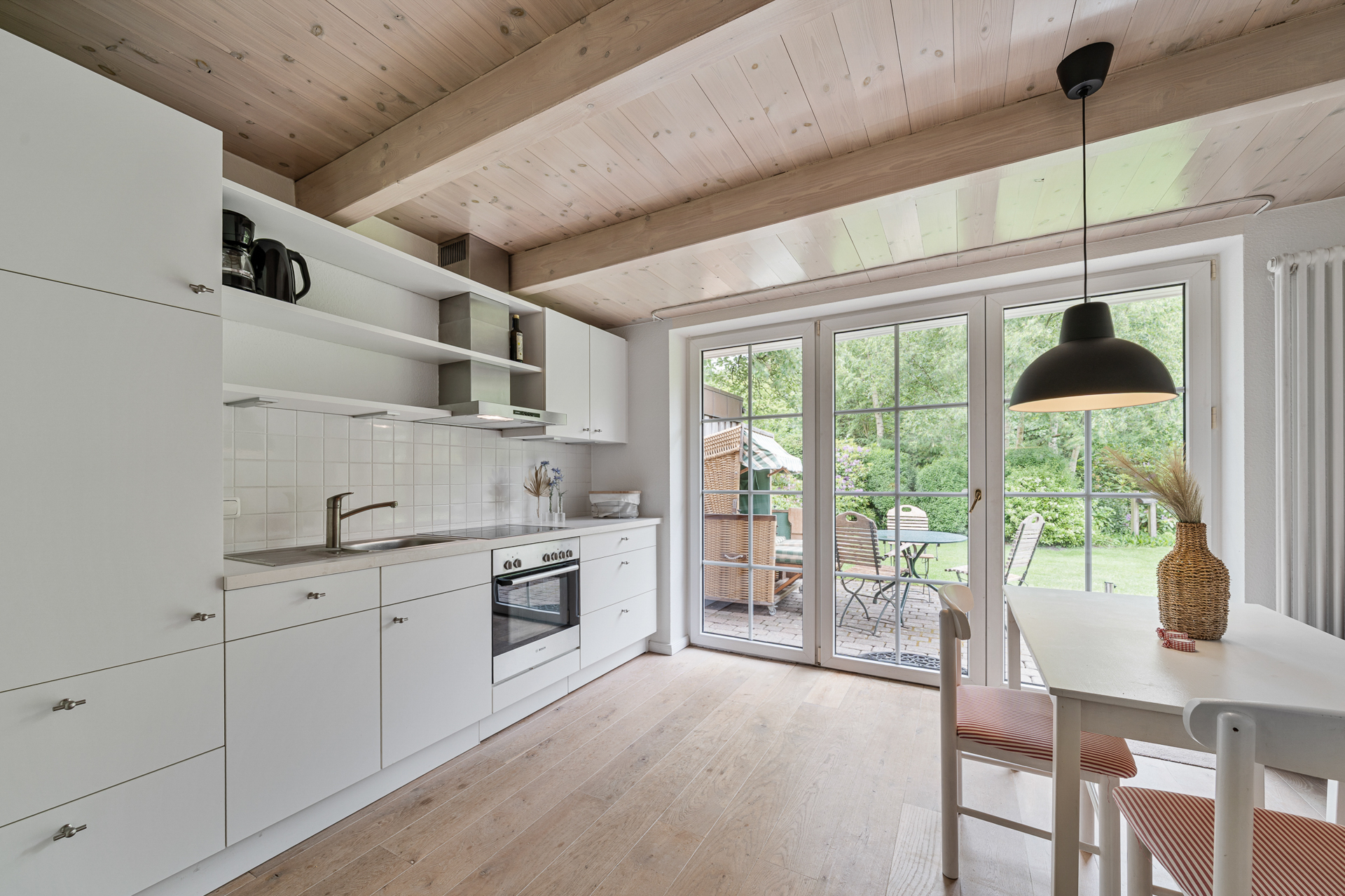 Der 2004 errichtete Anbau verfügt über einen separaten Eingang und ist die ideale Ergänzung - ob für ältere Kinder, Angehörige oder Freunde. Herzstück ist der lichtdurchflutete Wohn- und Essbereich mit integrierter Küche. Sichtbare, gekälkte Holzbalken verleihen der Einheit ein unverwechselbares Wohngefühl. Ein kleiner Abstellraum bietet Potenzial für ein Gäste-WC. Im Obergeschoss befinden sich ein Schlafzimmer sowie ein Badezimmer, sodass diese Einheit vollständig unabhängig nutzbar ist. Das eigentliche Highlight dieses Hauses ist der liebevoll angelegte Garten. Hier verschmelzen Natur, Gestaltung und Privatsphäre zu einer seltenen Einheit. Die Kombination aus urwüchsigem Baumbestand, dichter Bepflanzung, gepflegtem Rasen und der ruhigen Lage am Wald schafft eine einmalige Atmosphäre - perfekt zum Entspannen. Dieses außergewöhnliche Haus verbindet den Charme vergangener Zeiten mit modernem Wohnkomfort in einer wunderschönen Lage von St. Peter-Ording. Vereinbaren Sie jetzt Ihren Besichtigungstermin - und lassen Sie sich vom Zauber dieses Gartens und Hauses begeistern.
