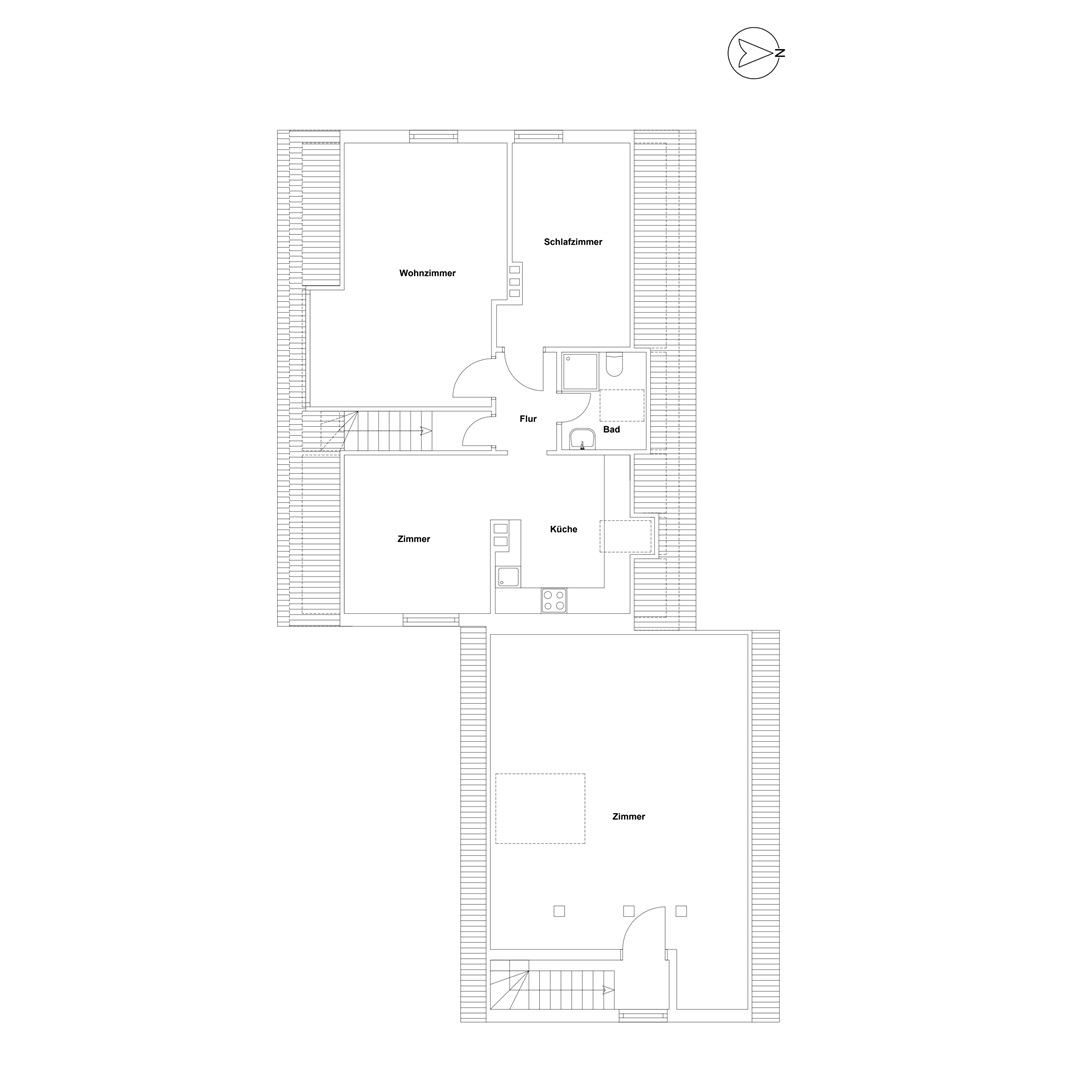 Die Wohnung im Obergeschoss verfügt zusätzlich über einen großzügigen Dachboden, der weitere Nutzungs- und Gestaltungsmöglichkeiten bietet.