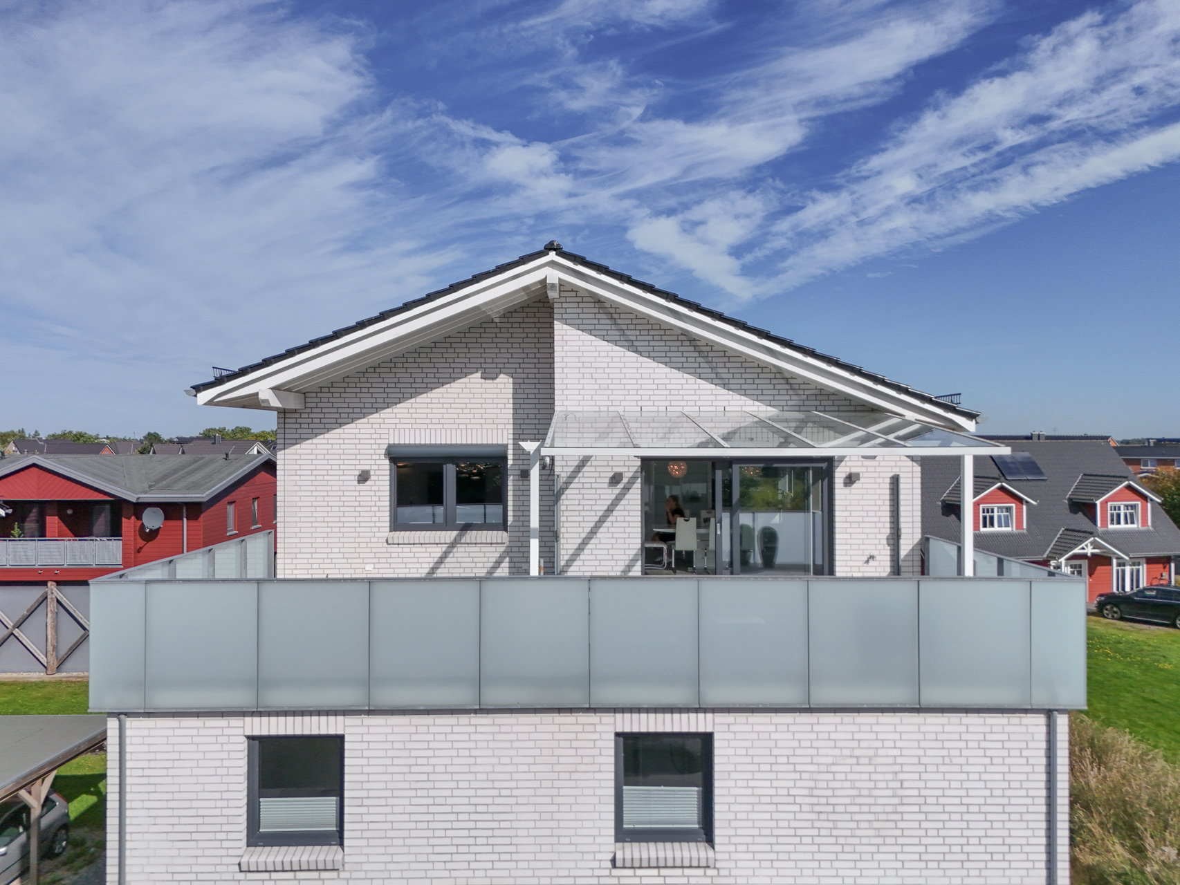 Dieses exklusive Penthouse befindet sich in St. Peter-Ording, im beliebten Ortsteil Dorf, im vorderen Bereich des Dachgeschosses eines im Jahr 2013 erbauten Hauses mit insgesamt nur neun Einheiten. Bereits beim Betreten beeindruckt die Wohnung durch ihre Großzügigkeit und ihren besonderen Charakter. Auf rund 154 Quadratmetern Wohnfläche erwarten die neuen Eigentümer vier Zimmer, darunter drei Schlafzimmer, sowie ein weitläufiger Wohn- und Essbereich mit offener Galerie und sichtbaren weißen Holzbalken, die der Wohnung eine helle und elegante Atmosphäre verleihen. Die Galerie ist über eine Wendeltreppe erreichbar und eröffnet vielfältige Nutzungsmöglichkeiten.