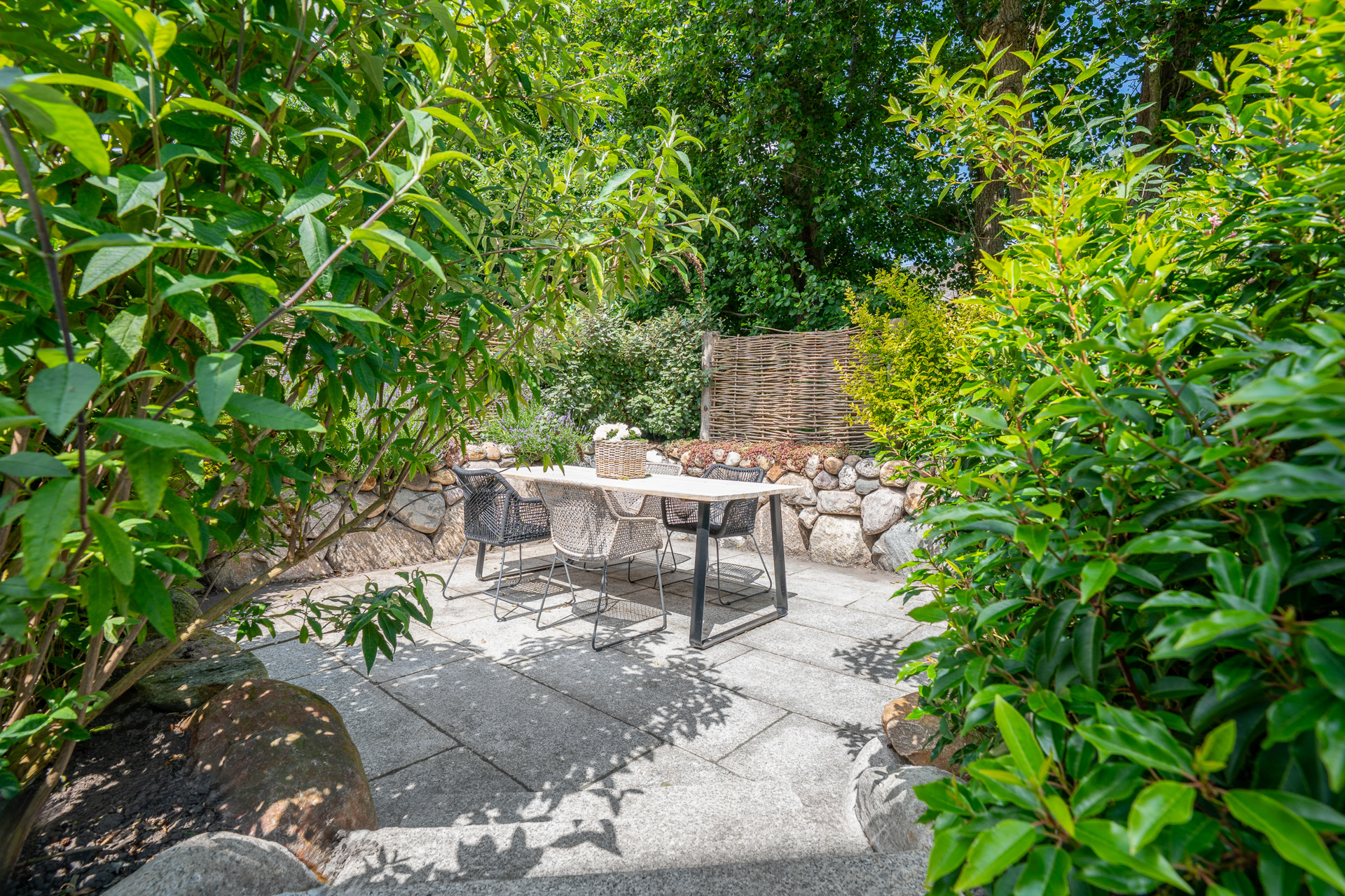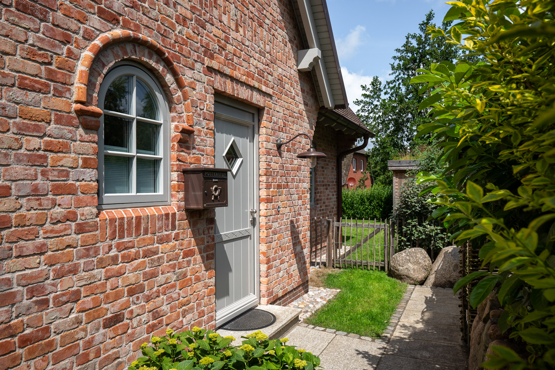Schon die äußere Erscheinung vermittelt einen bleibenden Eindruck: Das edle, antike Verblendermauerwerk in Kombination mit sorgfältig ausgewählten, historischen englischen Dachpfannen verleiht dem Gebäude eine elegante, zeitlose Ausstrahlung. Ein stilvoll angelegter Gartenweg mit hochwertigen Krustenplatten führt zur rückwärtigen Grundstückshälfte, die durch ihre geschützte Lage absolute Privatsphäre garantiert. Der liebevoll gestaltete Garten bietet nicht nur eine großzügige Terrasse direkt am Wohnzimmerbereich, sondern auch eine einzigartige Sonnenkuhle - ein windgeschützter Rückzugsort mit hohem Wohlfühlfaktor inmitten des gepflegten Grüns. Im Inneren setzt sich die Exklusivität nahtlos fort. Dänische Holz-Aluminium-Fenster unterstreichen die Hochwertigkeit der Immobilie ebenso wie die edlen Materialien im gesamten Wohnbereich. Über eine wunderschöne Eingangstür gelangen Sie zunächst in den Windfang, von dem aus zur einen Seite der Technikraum sowie das Gäste-WC abgehen. Zur anderen Seite öffnet sich der großzügige, offene und lichtdurchflutete Wohn- und Essbereich mit integrierter Küche.
