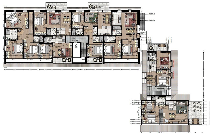 Die Wohnungen sind nicht nur ästhetisch ansprechend, sondern bieten auch praktische Annehmlichkeiten wie eine moderne Küche mit hochwertigen Geräten, ein stilvolles Badezimmer und großzügige Wohnbereiche, die zum Entspannen und Genießen einladen.